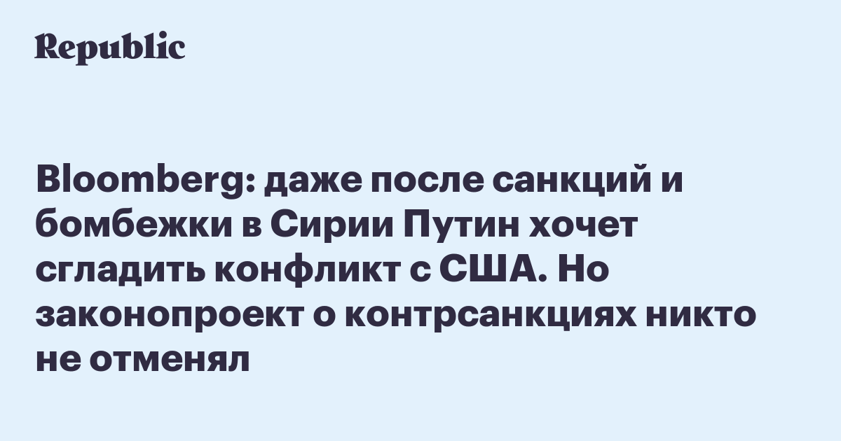 Bloomberg: даже после санкций и бомбежки в Сирии Путин хочет сгладить конфликт с США. Но законопроект о контрсанкциях никто не отменял