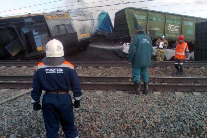 Два товарных поезда сошли с рельсов в Искитимском районе Новосибирской области. Один состав перевернулся.