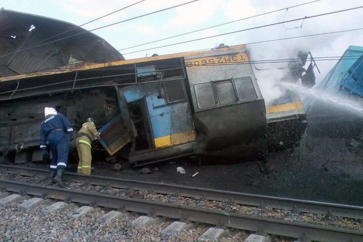 В последний вагон пустого грузового поезда въехал состав с углем, уточнили в пресс-службе регионального управления МЧС. На месте работают23 человека и 8 единиц техники.