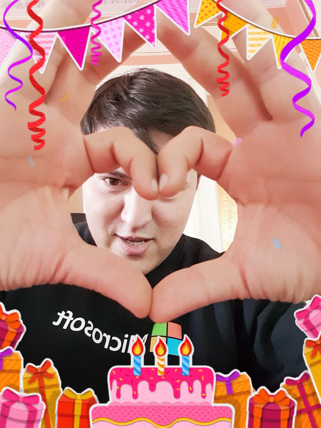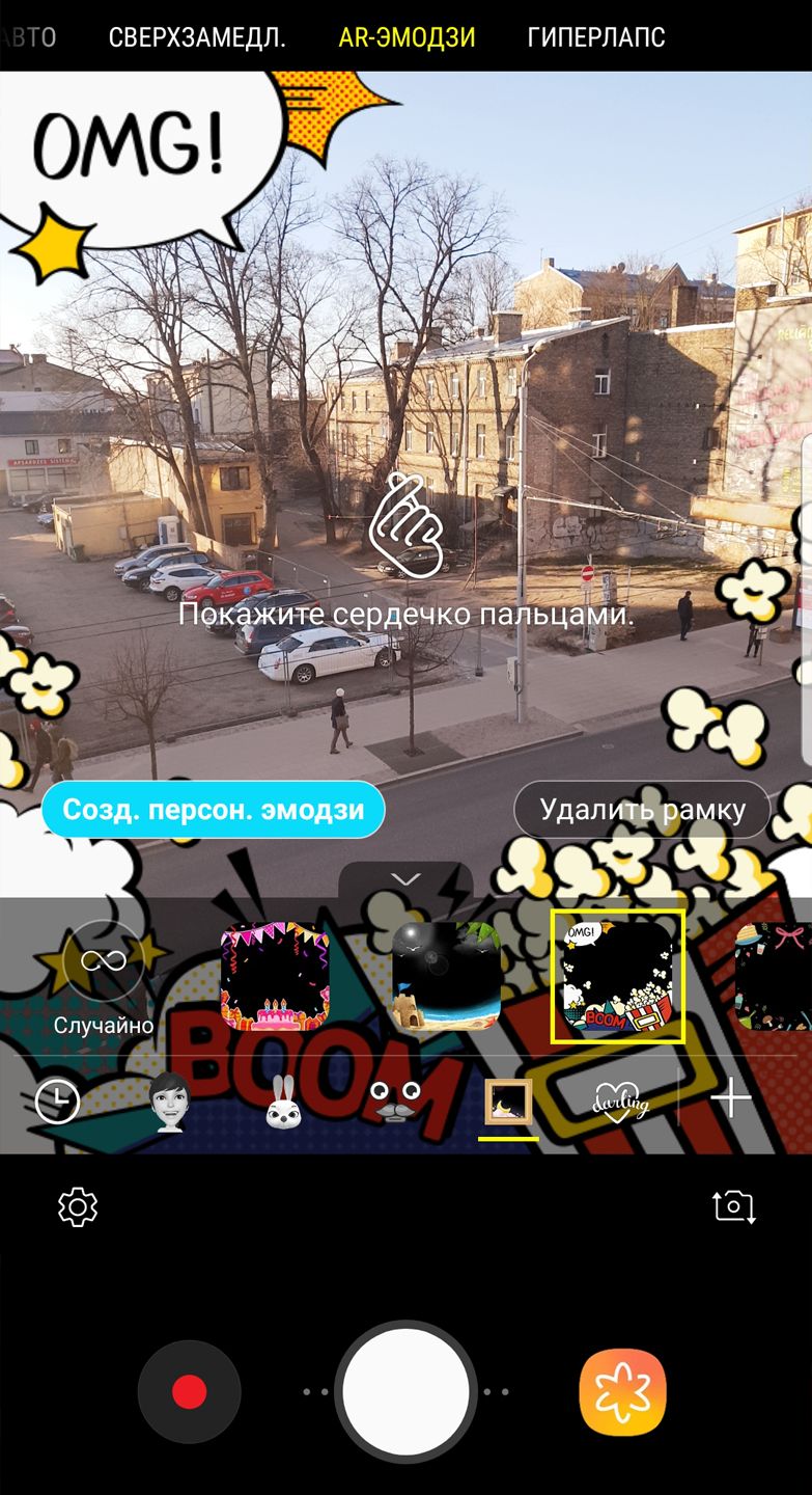 - «дополненная реальность» — набор стикеров, часть из которых привязывается к лицу человека в кадре, а часть просто декорирует снимок.