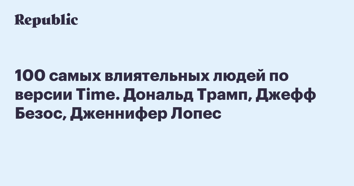 100 самых влиятельных людей по версии Time. Дональд Трамп, Джефф Безос, Дженнифер Лопес