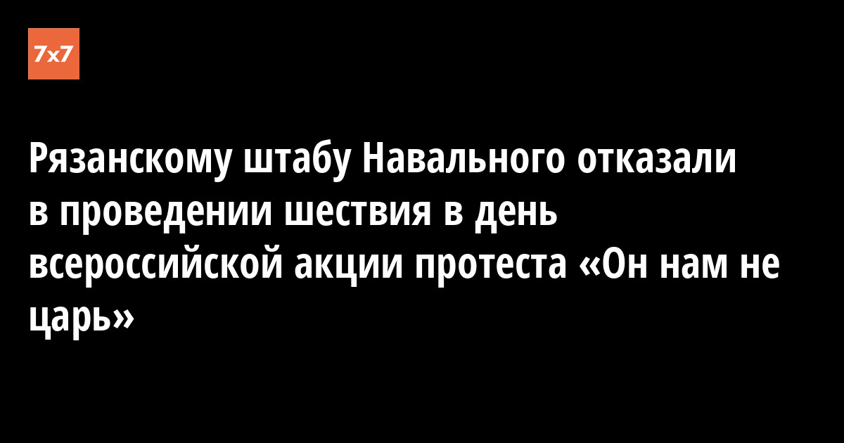 Рязанскому штабу Навального отказали в проведении шествия в день всероссийской акции протеста «Он нам не царь»