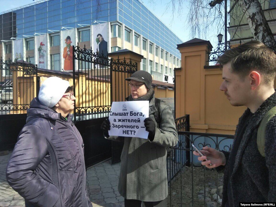 Жители томского микрорайона Заречный провели акцию протеста возле здания местной епархии с требованием остановить строительство храма рядом с их домами. Люди организовали серию одиночных пикетов. Несколько человек по очереди выходили к зданию русской православной церкви с одинаковыми плакатами в руках: "Слышат Бога, а жителей Заречного – нет?". Они недовольны позицией епархии, которая отказывается вести диалог с жителями района.