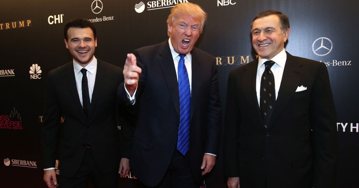 Дональд Трамп, Арас (справа) и Эмин Агаларовы на конкурсе «Мисс Вселенная-2013» в Москве. Фото: ТАСС
