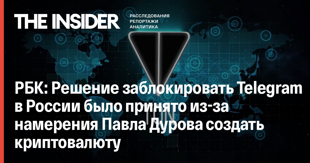 РБК: Решение заблокировать Telegram в России было принято из-за намерения Павла Дурова создать криптовалюту