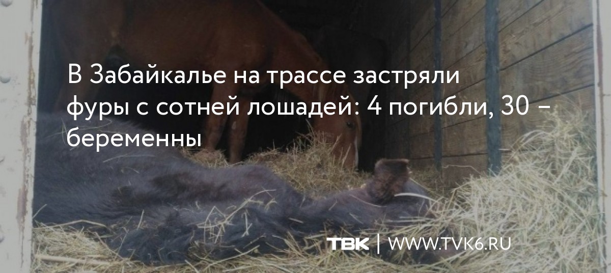 В Забайкалье на трассе застряли фуры с сотней лошадей: 4 погибли, 30 – беременны