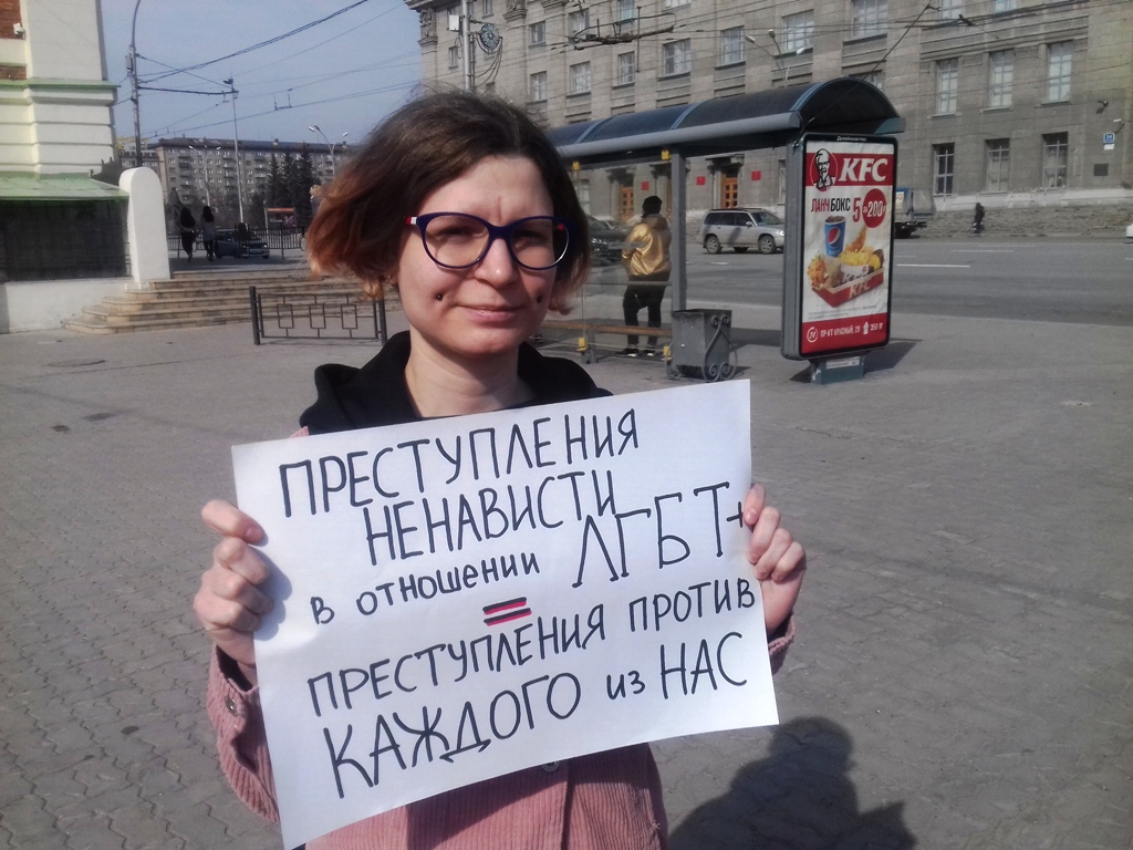 Несколько представителей ЛГБТ-сообщества провели серию одиночных пикетов в Первомайском сквере Новосибирска. Пикеты прошли в рамках всероссийской акции “День молчания”, которая направлена на привлечение внимания к проблемам дискриминации людей по признакам сексуальной ориентации и гендерной идентичности.