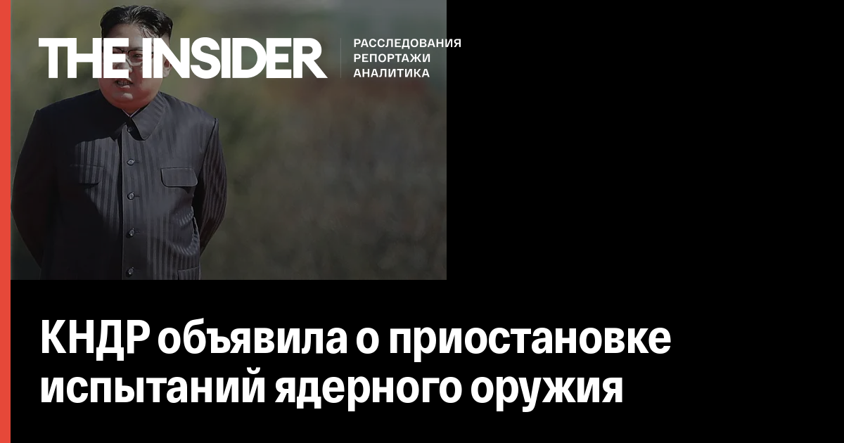 КНДР с 21 апреля приостанавливает испытание ядерного оружия и межконтинентальных баллистических ракет и закрывает полигон для ядерных испытаний. Об этом сообщает РИА «Новости» со ссылкой на сообщение северокорейского агентства ЦТАК.