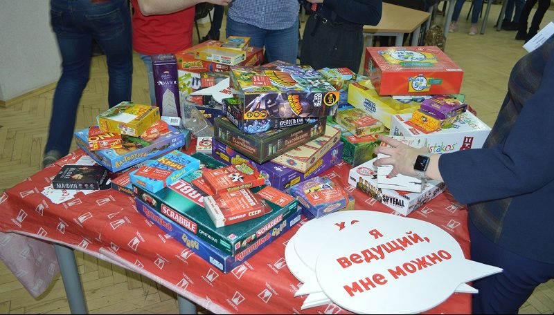 В правом крыле этажа проходило сразу несколько событий. Илья Житков, представляющий “Информационный центр атомной энергии”, проводил конкурс на знание значений редких слов. Правильно отгадавших ждали призы в виде мерча с символикой центра.