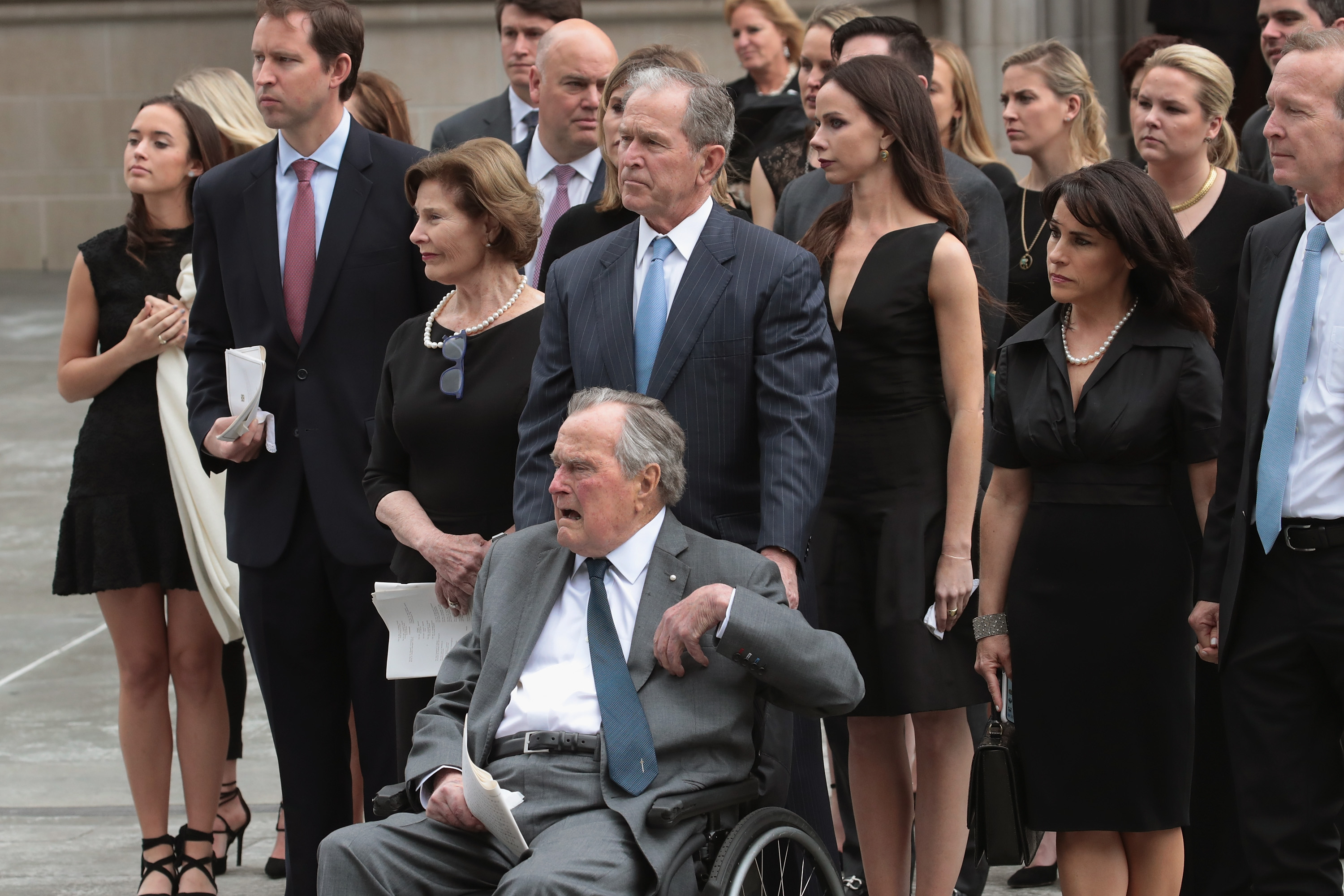 В епископальной церкви святого Мартина в Хьюстоне среди присутствовавших были экс-президенты Джордж Буш-старший, Билл Клинтон, Джордж Буш-младший и Барак Обама, а также члены их семей. На церемонии присутствовали десятки бывших сотрудников американской администрации, в частности, бывший госсекретарь США Кондолиза Райс и бывший глава Пентагона Роберт Гейтс. На панихиду прибыла также нынешняя первая леди Меланья Трамп. Дональд Трамп на похороны не приехал, чтобы, как сообщил он в твиттере, "не создавать неудобств дополнительными мерами безопасности".