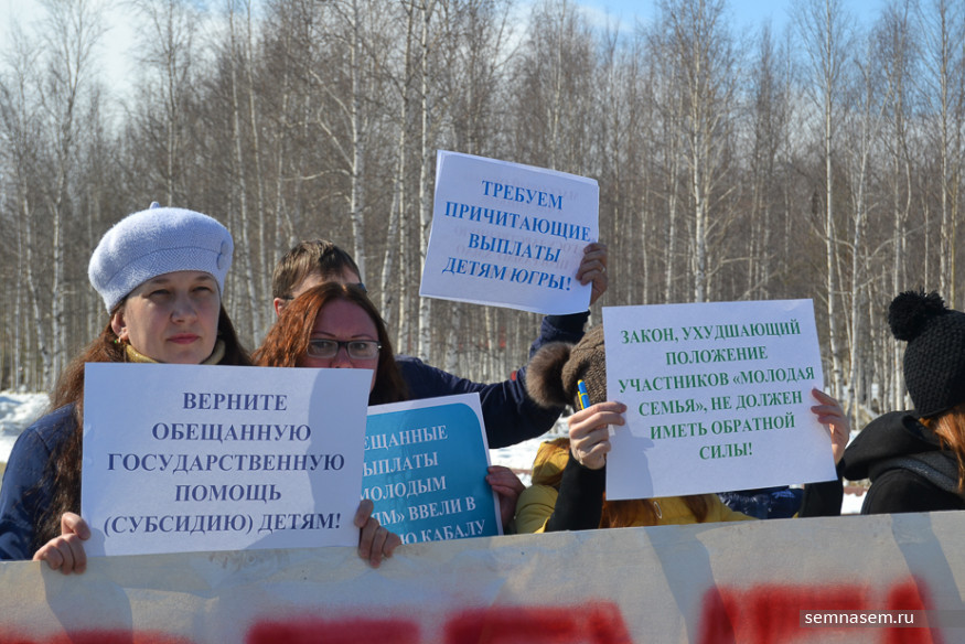 Акции протеста многодетных и молодых семей против неисполнения правительством округа обязательств по выплатам жилищных субсидий по программе «Доступное жилье молодым» прошли 22 апреля в городах Югры. В Нефтеюганске обманутые участники государственной программы собрались к 11 часам на территории городского скейт-парка. В акции приняли участие около ста человек. Подробности — в репортаже корреспондента «7x7».
