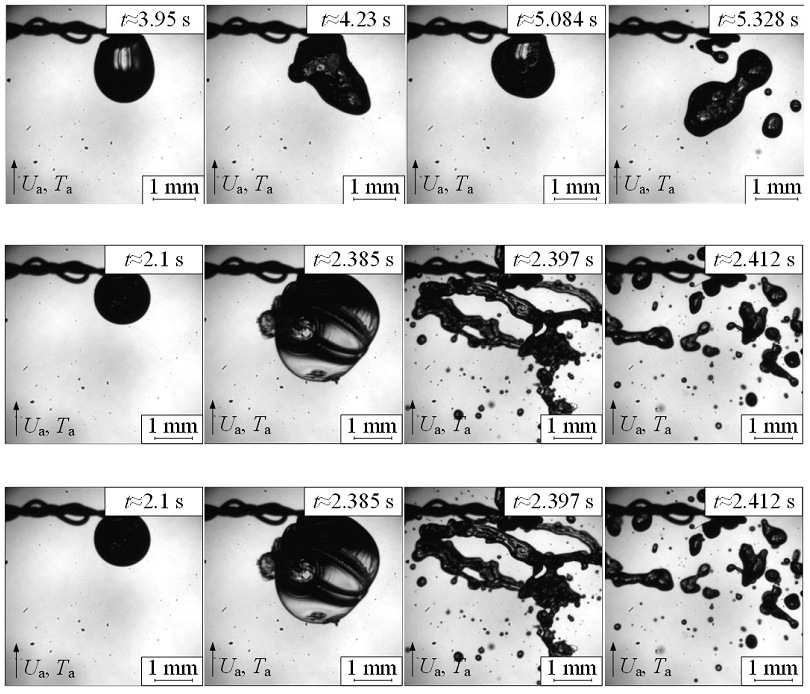 Видеофрагменты экспериментов, иллюстрирующие три режима кипения и распада исследуемых капель (воды и керосина). Пресс-служба ТПУ