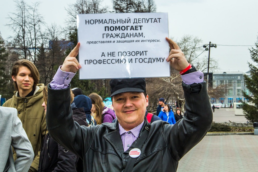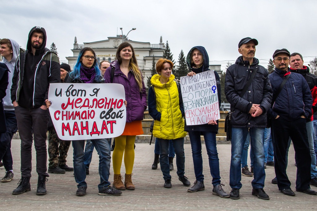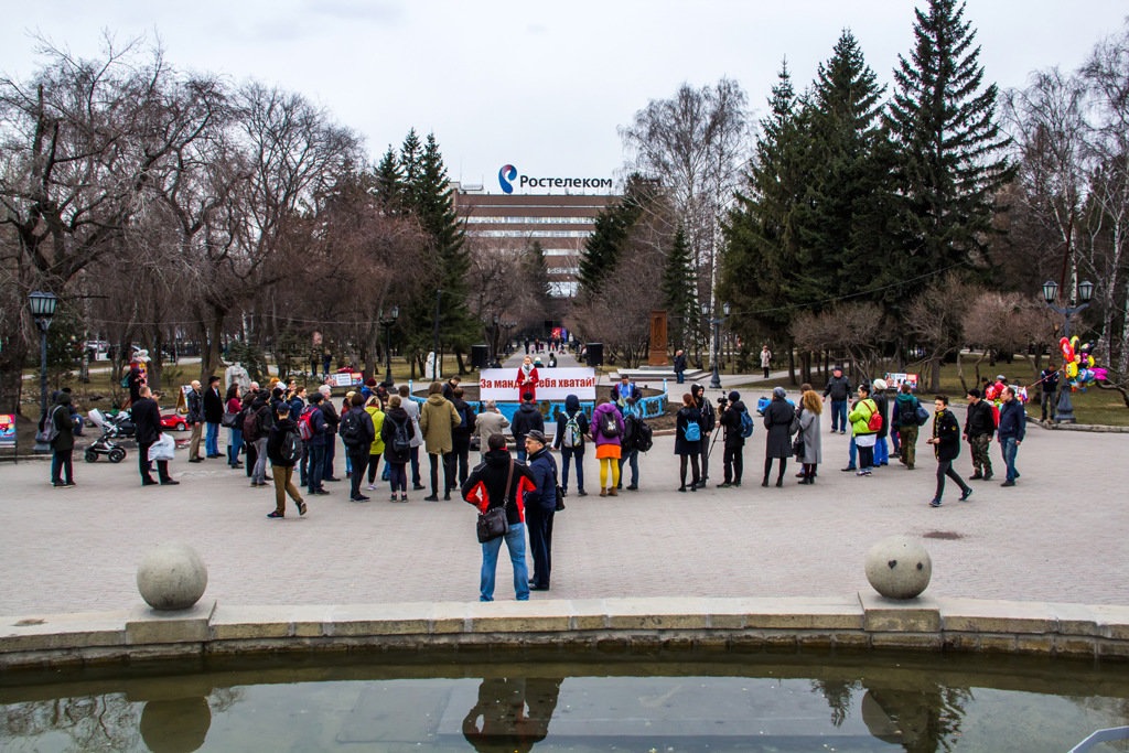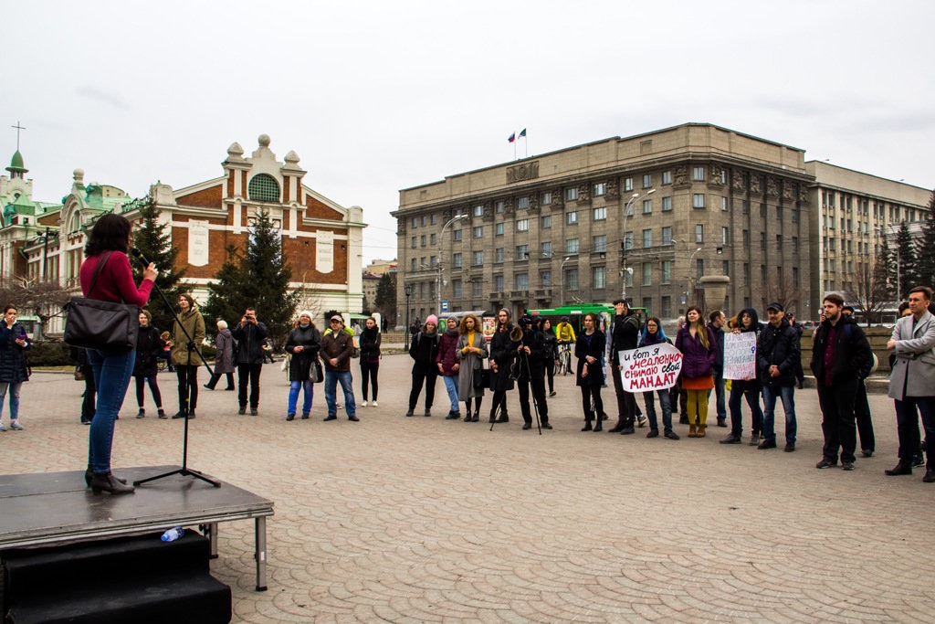 Митинг прошел 22 апреля в Первомайском сквере напротив мэрии. Акцию заявили PR-менеджер кинотеатра «Люксор» Хельга Пирогова и журналист сайта НГС Лиза Пичугина. Участники, среди которых оказались представители разных политических сил, пришли без партийной символики.
