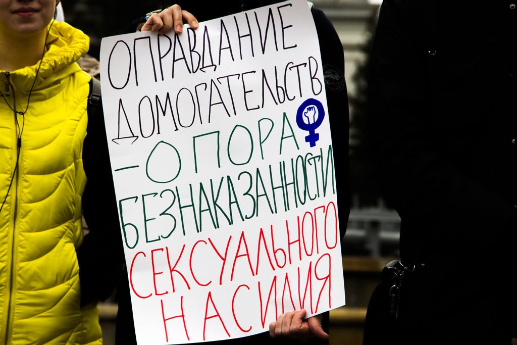 «Я считаю, что сексуальные домогательства — это недопустимое поведение, тем более для человека, который представляет наши интересы в Госдуме», — начала митинг Пирогова.