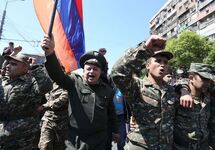 Около 20 военных во главе с подполковником вышли с флагом Армении на улицу Ханджяна, где проводится марш студентов. "Мы присоединились к народу, мы с нашим народом", - пояснили они журналистам.