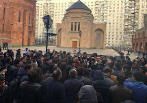 В Москве в воскресенье вечером у армянского храмового комплекса примерно 300 выходцев из Армении устроили несогласованную акцию солидарности с протестующими в Ереване, сообщает "Кавказский узел".