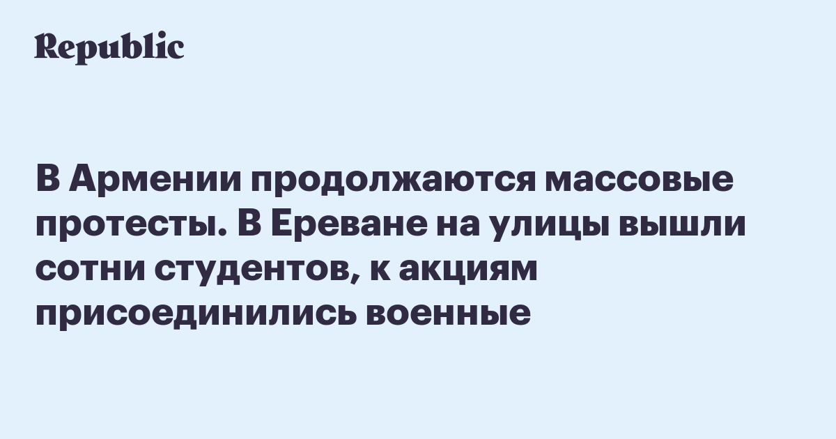 В Армении продолжаются массовые протесты. В Ереване на улицы вышли сотни студентов, к акциям присоединились военные