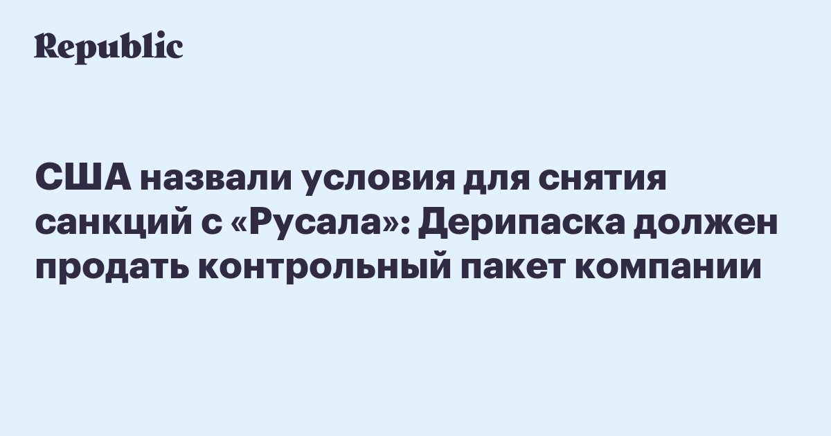 Санкции, введенные США против «Русала», могут быть ослаблены или сняты, если основной владелец компании Олег Дерипаска откажется от контроля в ней. Об этом говорится в материалах OFAC (департамента Минфина США по контролю за иностранными активами).