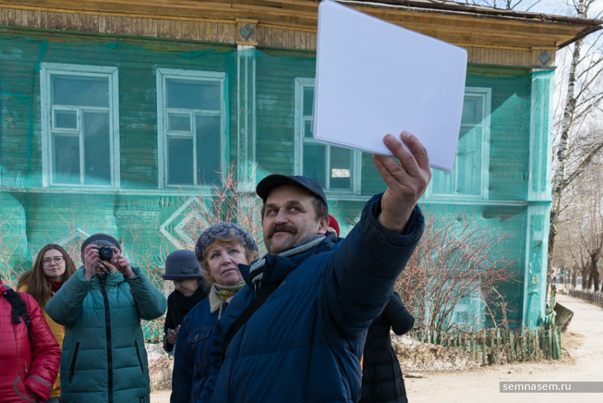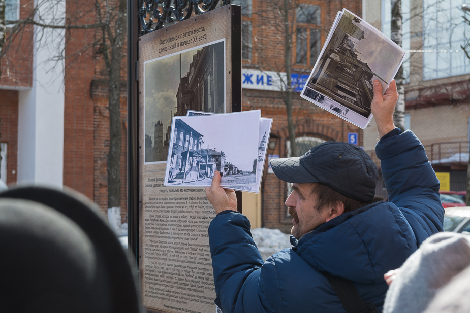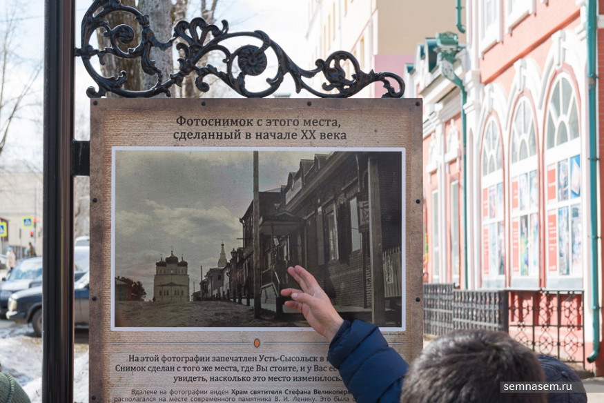Вел экскурсию общественник Игорь Сажин. Участникам прогулки он показывал фотографии Усть-Сысольска XIX века, на которых увидел интересные детали.