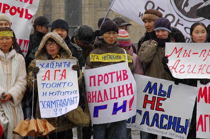 Мы собрали около 2000 подписей. Письмо подписывали не только буряты, люди разных национальностей, которые у нас живут в Бурятии. У нас нет абсолютно никаких трений именно по национальному признаку. Это была наша первая акция, мы заявили о себе, нас заметили. Потом мы начали проводить акции, написали брошюру о том, почему мы против объединения.