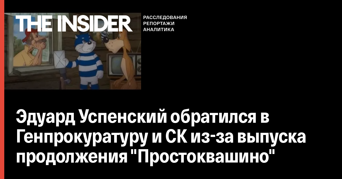 Эдуард Успенский обратился в Генпрокуратуру и СК из-за выпуска продолжения "Простоквашино"