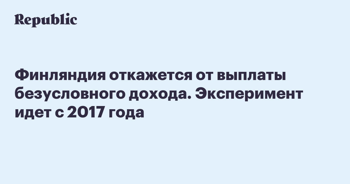 Финляндия откажется от выплаты безусловного дохода. Эксперимент идет с 2017 года