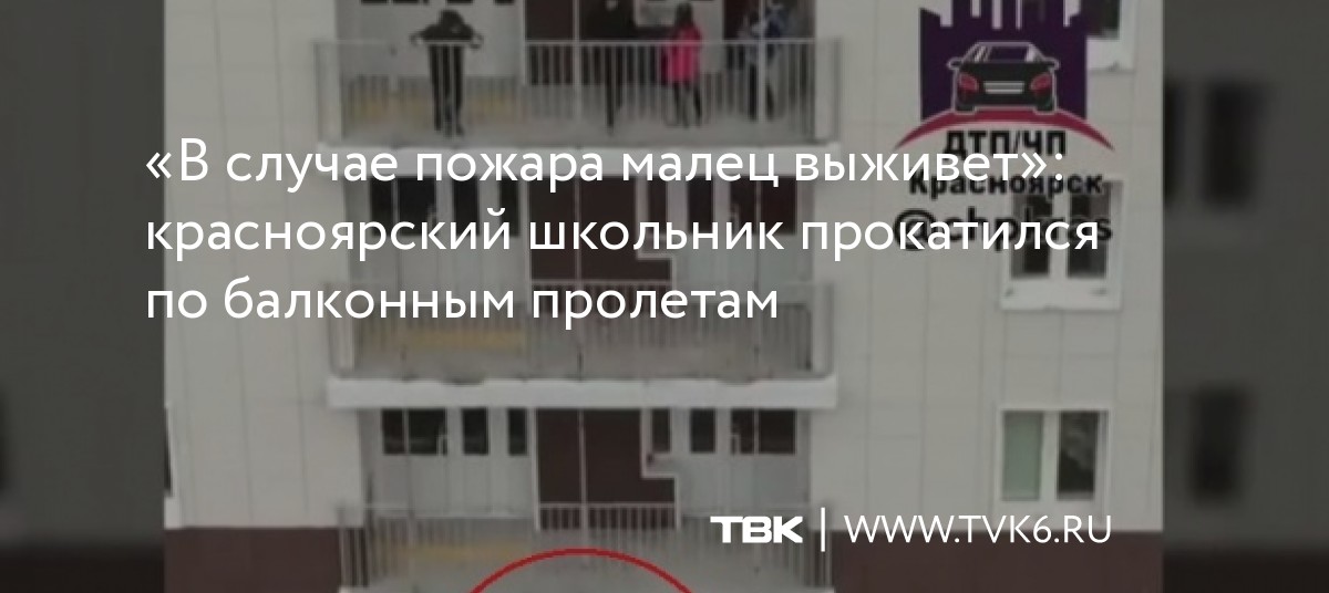 «В случае пожара малец выживет»: красноярский школьник прокатился по балконным пролетам