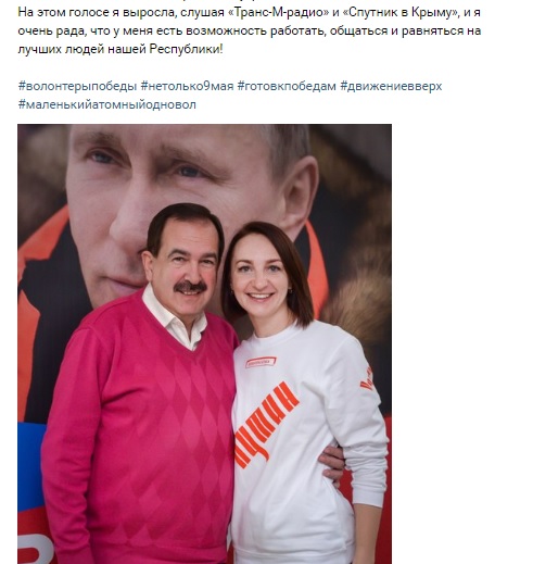 «Я ее знаю с 2014 года. Сразу же после воссоединения Крыма с Россией вступила в ряды добровольцев. Потом стала руководителем «Волонтеров Победы» в Крыму. На нее легла большая ответственность по организации мероприятий, и она отлично справлялась со всеми обязанностями. Она стала победителем на конкурсе «Доброволец России». То есть ее вклад в работу по сохранению памяти был на самом высоком уровне оценен», – заявила член центрального штаба российского Общественного народного фронта Елизавета Цокур.