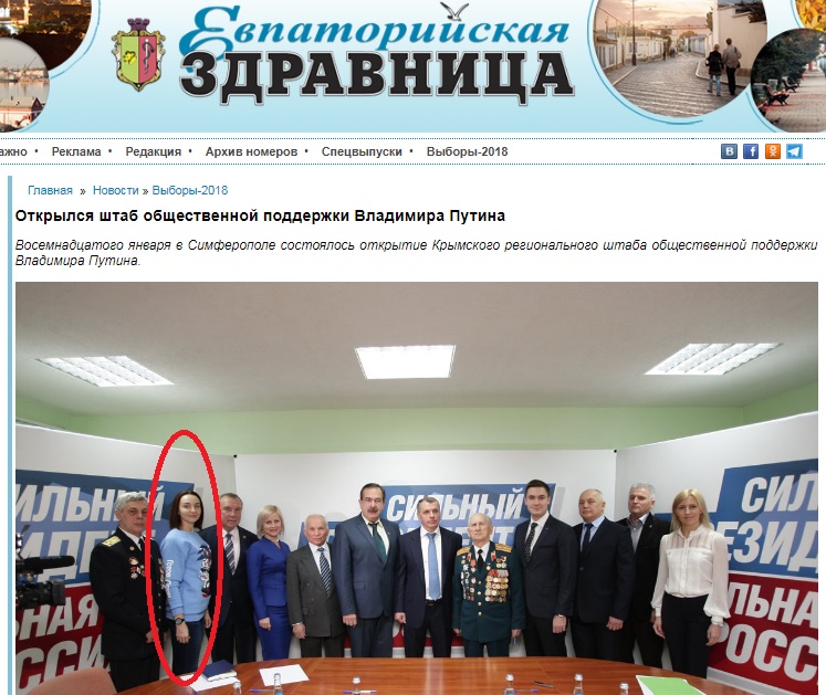 Затем она вошла в крымский штаб общественной поддержки Путина. В Прокуратуре АРК сообщили, что Одновол являлась доверенным лицом российского президента, о чем также писал ряд СМИ. Но в числе официально зарегистрированных Избиркомом России доверенных лиц ее фамилии нет. Хотя на многих фото она позирует рядом с теми, кто действительно выполнял эту функцию – крымским радиоведущим Борисом Левиным и легендой крымского спорта Рустемом Казаковым.