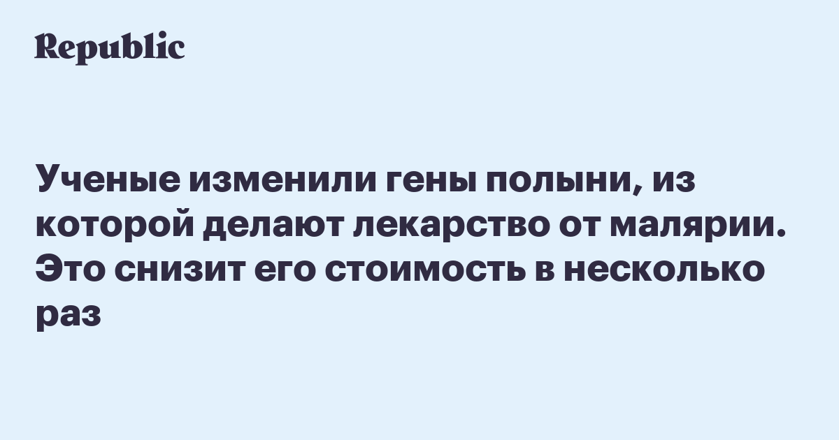 Ученые изменили гены полыни, из которой делают лекарство от малярии. Это снизит его стоимость в несколько раз