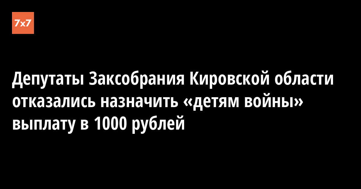 Депутаты Заксобрания Кировской области отказались назначить «детям войны» выплату в 1000 рублей
