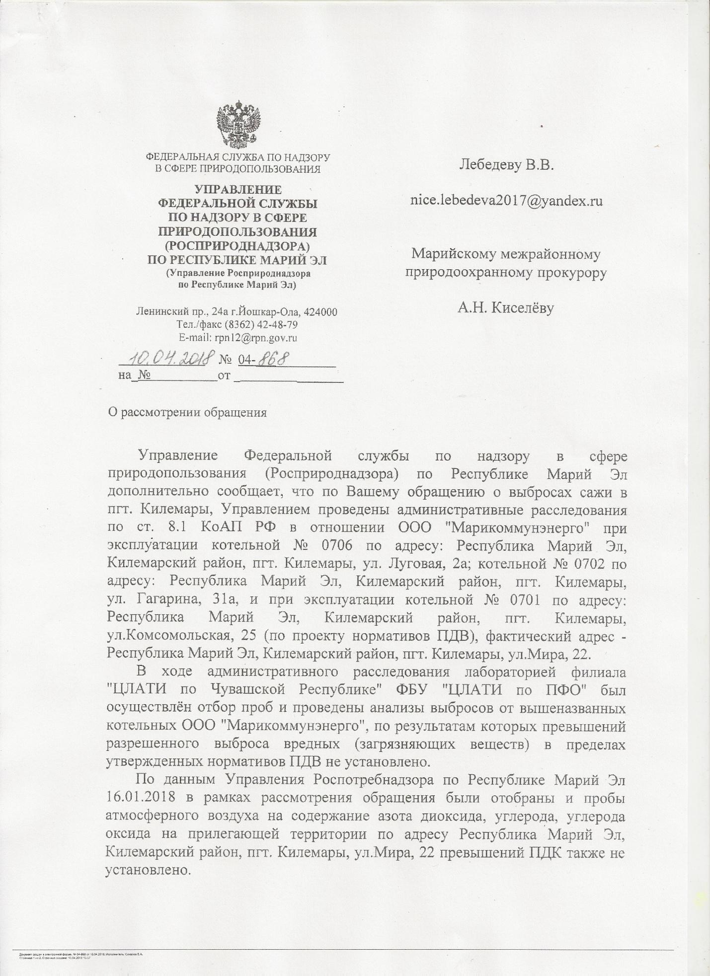 Вот что я получил ответ по электронной почте на счет выбросов с нашей центральной котельной.