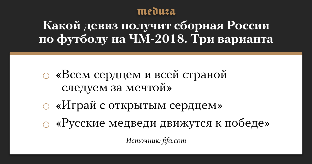 На сайте ФИФА открыли голосование за девиз, который будет украшать автобус сборной России на чемпионате мира по футболу: