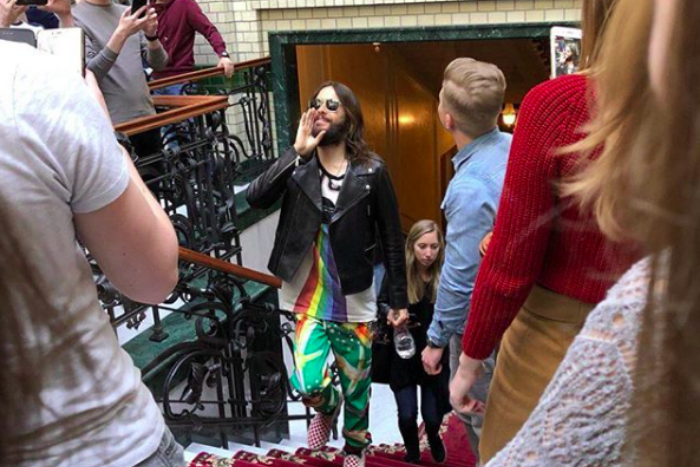 Около Дома Зингера Лето ждали поклонники, которые пытались с ним сфотографироваться.