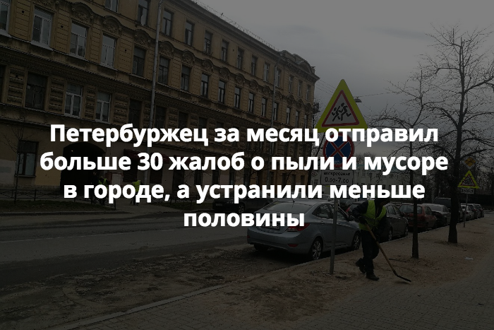 Петербуржец Артемий Иванюшин с начала апреля почти ежедневно оставлял жалобы на портале «Наш Санкт-Петербург» на пыль и плохое благоустройство в городе. Иванюшин рассказал «Бумаге», что всего он отправил 34 обращения.