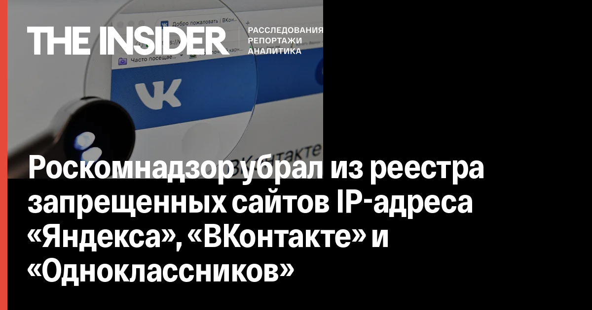 Роскомнадзор убрал из реестра запрещенных сайтов IP-адреса «Яндекса», «ВКонтакте» и «Одноклассников»
