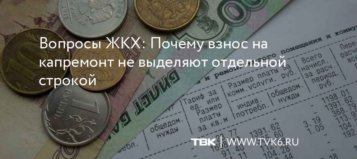 Вопросы ЖКХ: Почему взнос на капремонт не выделяют отдельной строкой