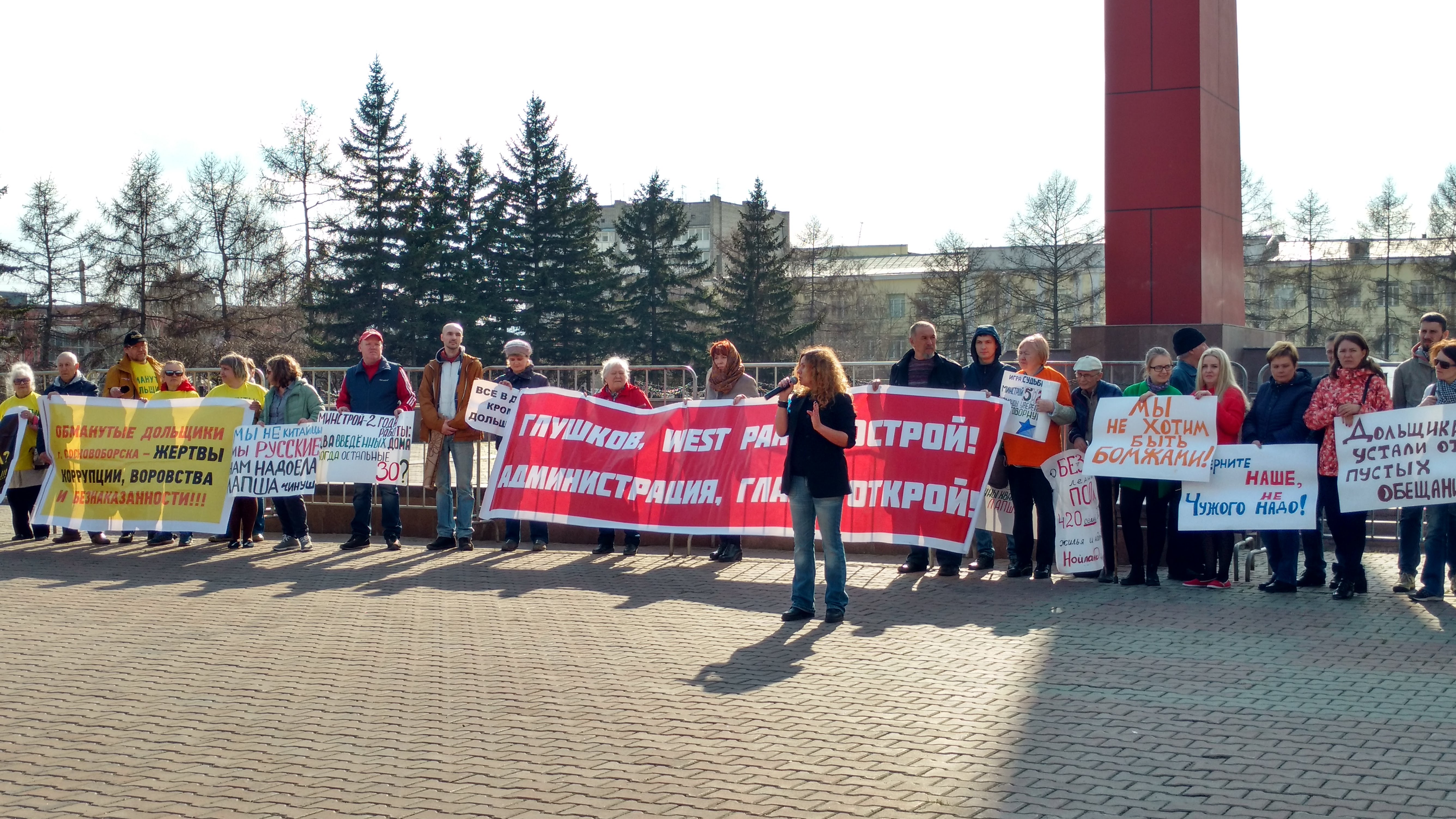 По словам организатора акции протеста Мадины Ряжевой, сейчас сохраняется неясность с пятнадцатью недостроенными домами в Красноярске. Местные власти приняли закон о материальной компенсации пострадавшим дольщикам и намерены предоставить на льготных условиях площадки для строительства тем застройщикам, которые возьмутся завершить начатые дома. Сейчас предполагаемые для выделения земли принадлежат министерству обороны России. Администрации города предстоит договариваться об их передаче.