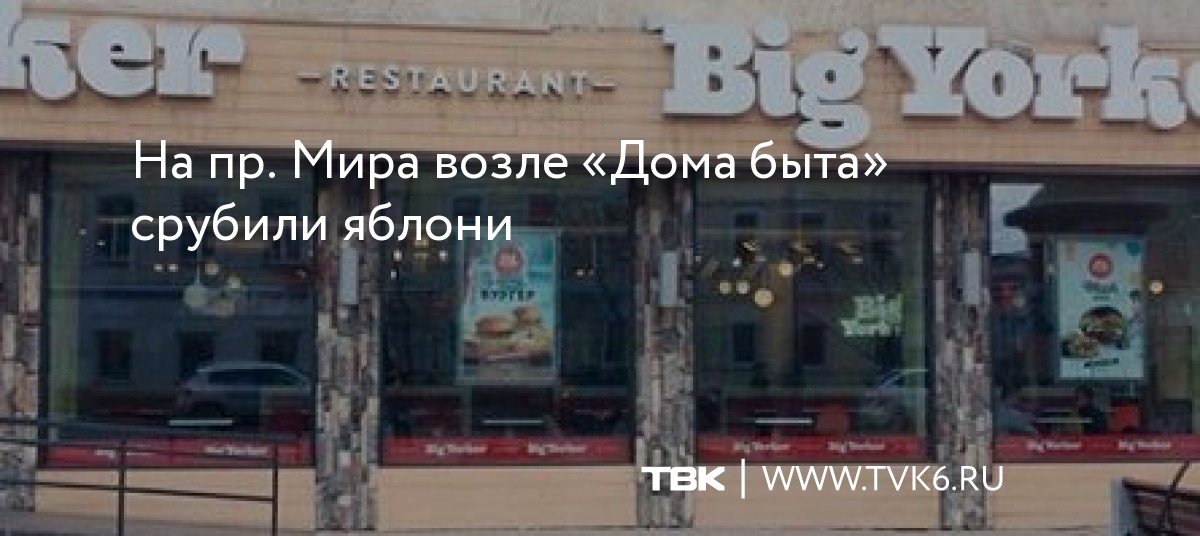 «Вырубили две яблони около Дом Быта на пр. Мира. Те самые раскидистые, цветущие и благоухающие весной, летом дающие прохладную тень и успокаивающий шелест ветра, когда ты присел перевести дух на лавочку под ними. Напротив вывеска BigYorker, которую закрывали яблони», – написала красноярка.
