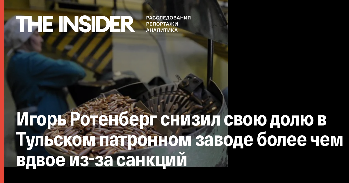 Менеджер оборонного предприятия заявил «Ведомостям», что сделка по снижению доли Ротенберга связана с наложенными на него санкциями США. Решение бизнесмена выйти из уставного капитала компании позволит заводу экспортировать патроны в третьи страны.