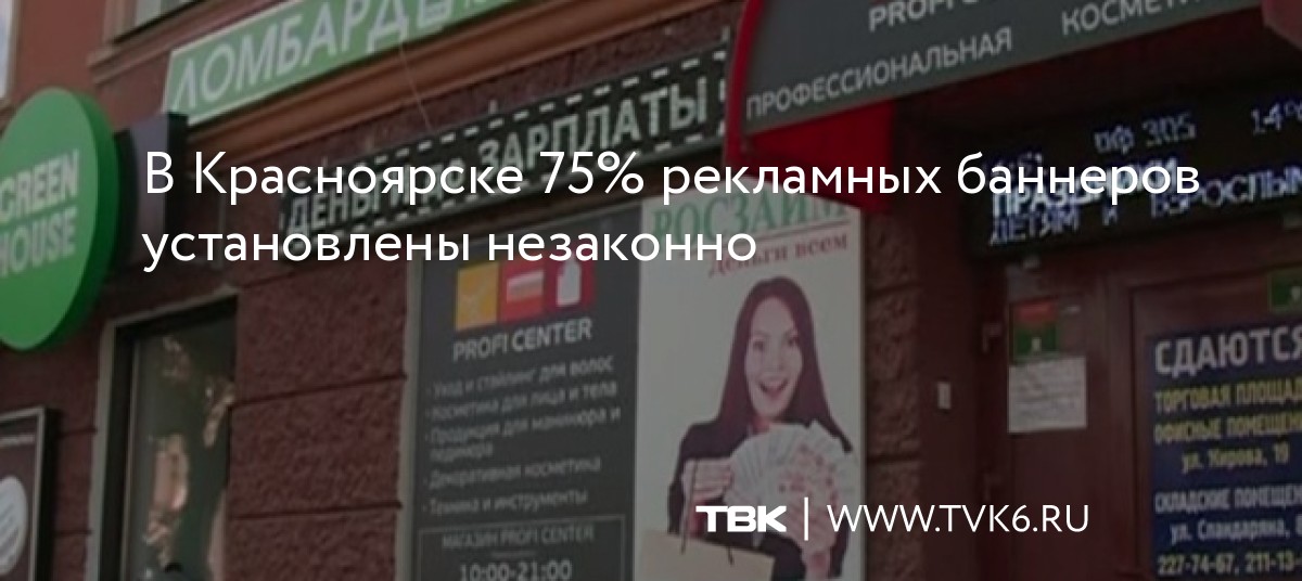 Всего на территории Красноярска почти 7 тыс. 300 рекламных конструкций, из них только 1 тыс. 800 имеют разрешения. Также прокуратура пришла к выводу, что городские чиновники ненадлежащим образом исполняют свои обязанности по демонтажу баннеров.