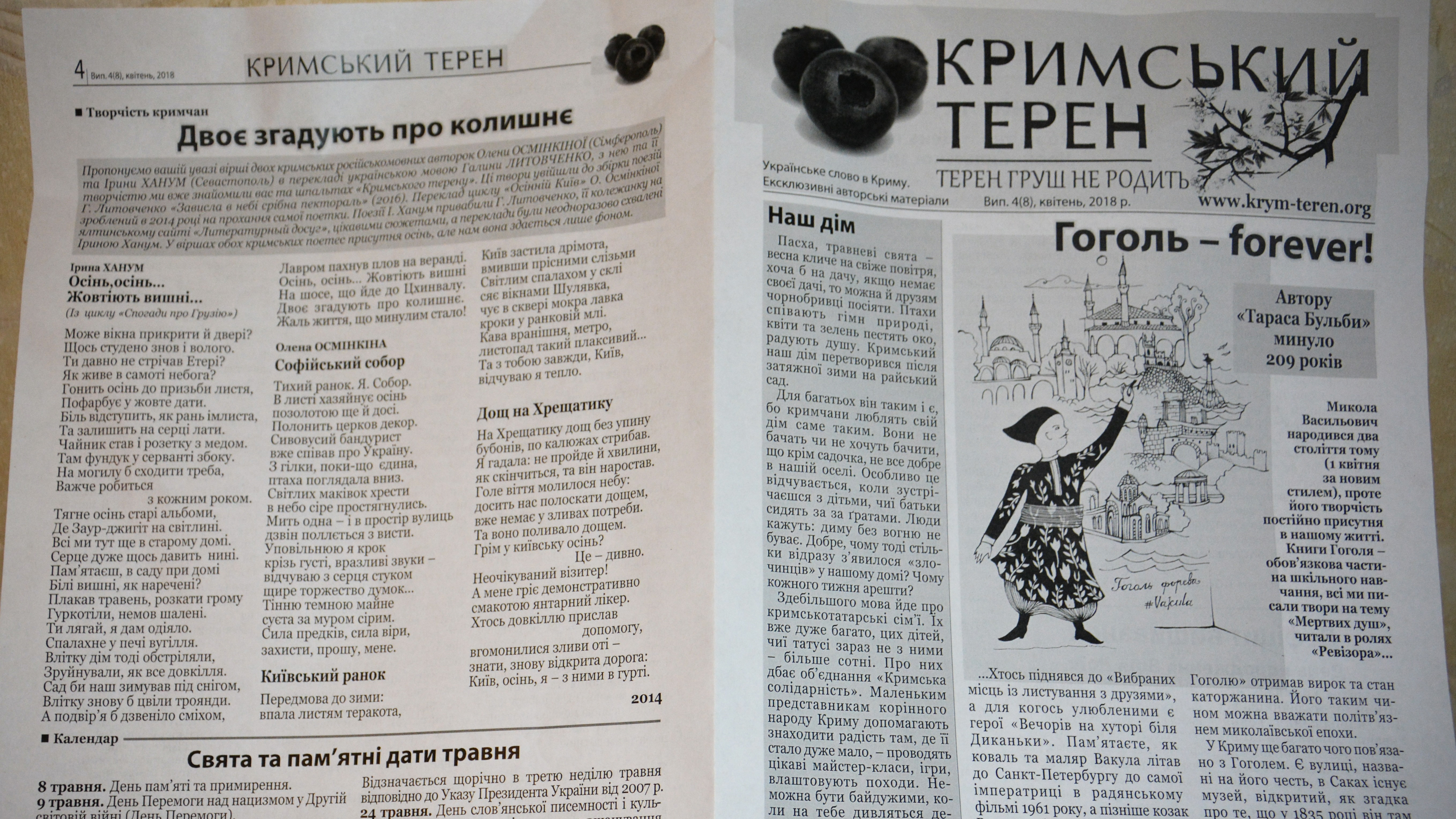 Активисты Украинского культурного центра в Крыму 26 августа 2017 года презентовали первый экспериментальный выпуск издания «Кримський Терен» на украинском и русском языках.