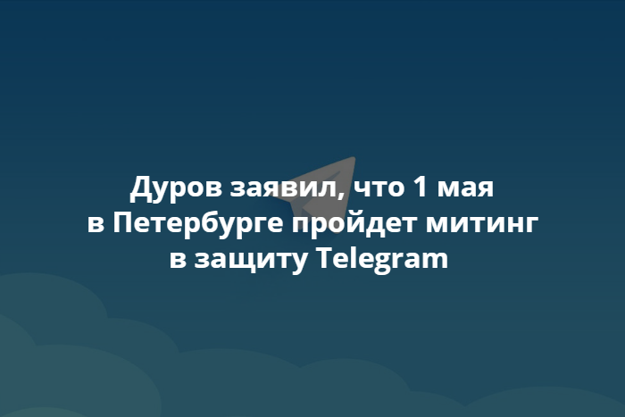 Создатель Telegram Павел Дуров заявил, что 1 мая в Петербурге пройдет митинг в защиту мессенджера от блокировок.