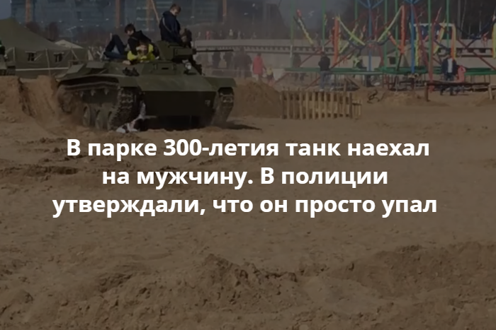 На некоторых видеозаписях видно, что после падения танк наехал на мужчину. Ранее в экстренных службах утверждали, что мужчина просто упал с танка.