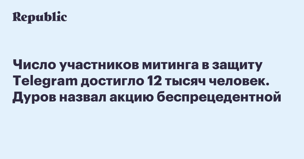 Число участников митинга в защиту Telegram достигло 12 тысяч человек. Дуров назвал акцию беспрецедентной