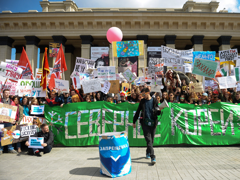 По его мнению, на плакаты "могут обидеться только те, кто хочет обидеться". "Монстрация" - это своего рода подведение итогов года. На самом деле хочется вытащить старые лозунги - и "Вперед в темное прошлое", и "Господи, прости", но мы ищем новые слова", - сказал художник. После шествия плакаты участников собрали для выставки, посвященной "Монстрации", которая откроется в Новосибирске 3 мая.