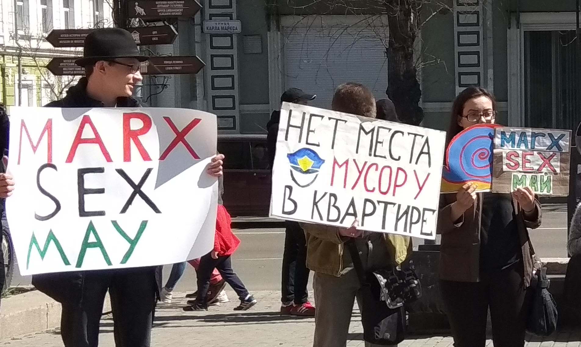 "Мы выбрали формат монстрации как художественного хэппенинга, потому что нам надоел классический первомай, который не имеет эффекта. Мы решили сделать что-то творческое, выбрать такой формат, уклон в творчество, может, показать абсурдность нашей жизни", – отметила она.