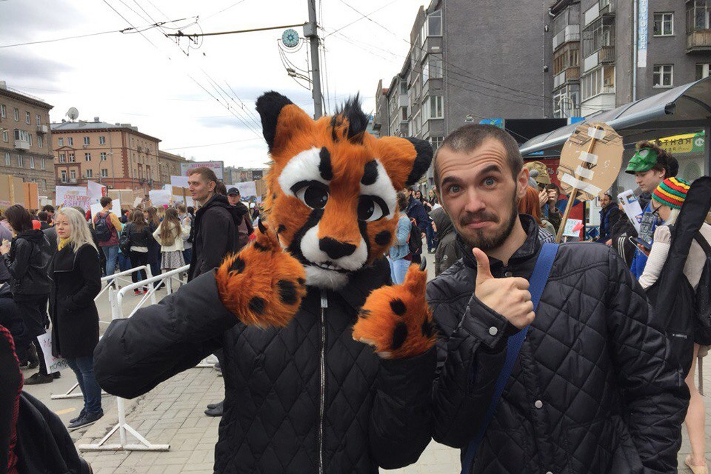 13:26 Новосибирцы, не участвующие в Монстрации, ничего против не имеют, судя по всему, улыбаются, зачитывают вслух лучшие плакаты и вообще рады карнавалу.