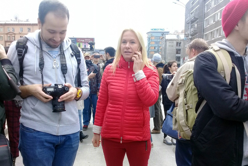 *12:43* Журналисты продолжают допрашивать Лоскутова, а могла бы полиция. Колонна ждет. Вот подошла и глава департамента культуры мэрии Анна Терешкова.