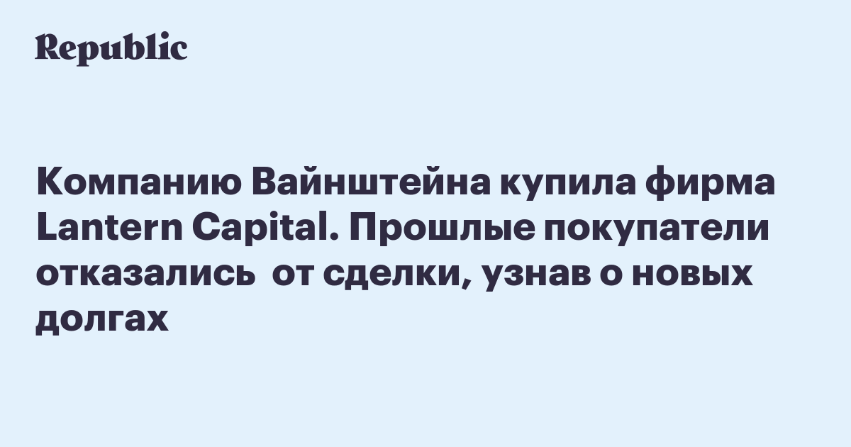 Компанию Вайнштейна купила фирма Lantern Capital. Прошлые покупатели отказались от сделки, узнав о новых долгах